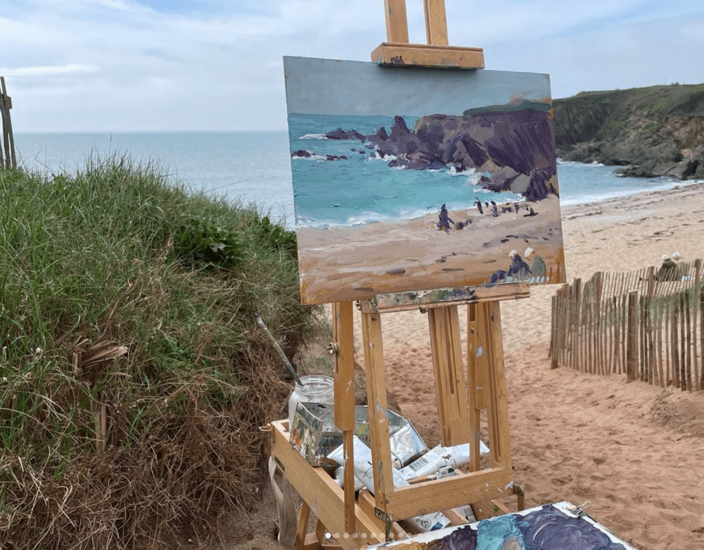 I think we’ve pushed the depressing cancer-survival-stats (referred to in ‘Statistics’) out of our minds, to be honest, as Lizzie’s happy and healthy at the moment – and is busy doing what she loves: painting away (she’s down in Devon right now doing exactly that – proof of which can be seen in the photo below, if proof is needed. Here’s her Instagram page too if you fancy a look).
