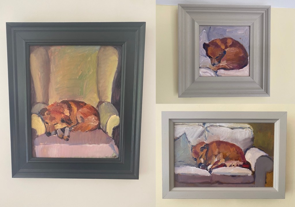 Lizzie gleefully pointed out, earlier, that while there are a number of her portraits of Cedric (our dog) dotted around the house… there are absolutely none of me.