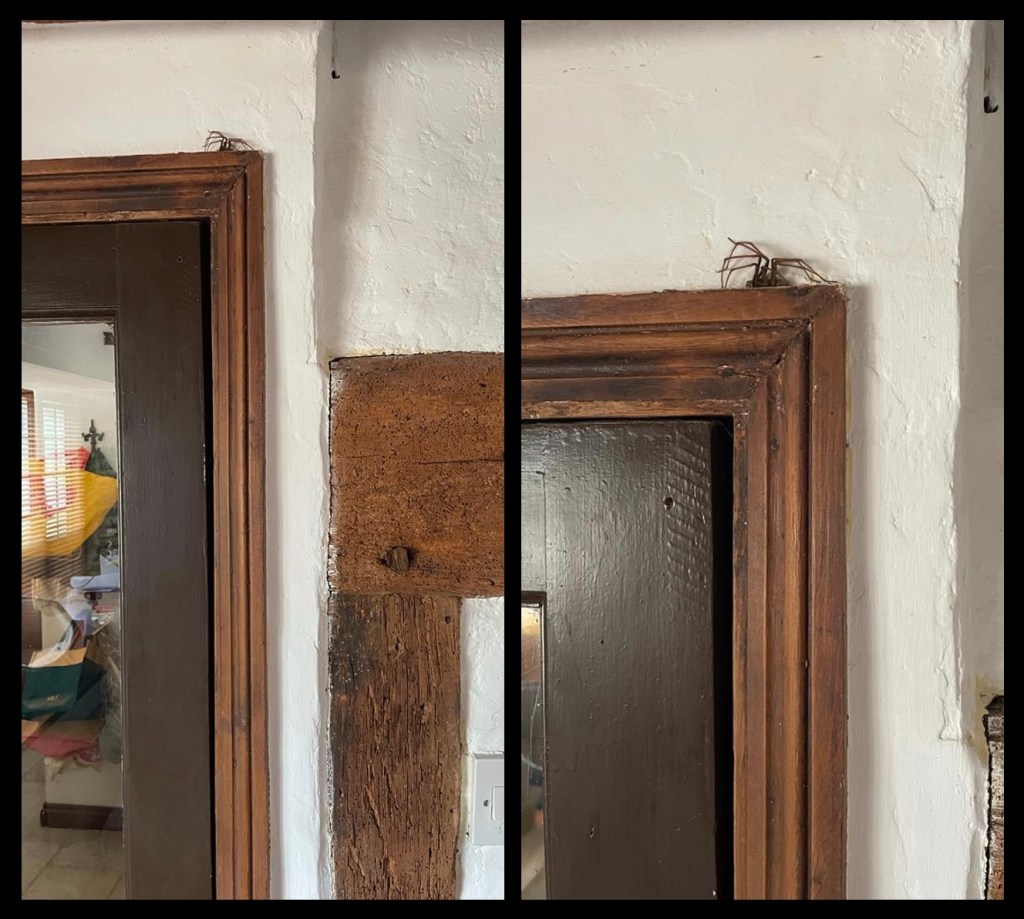 Lizzie took these photos of a spider in our house, lurking on a doorframe. Is it waiting to drop on our heads as we walk through? Probably.