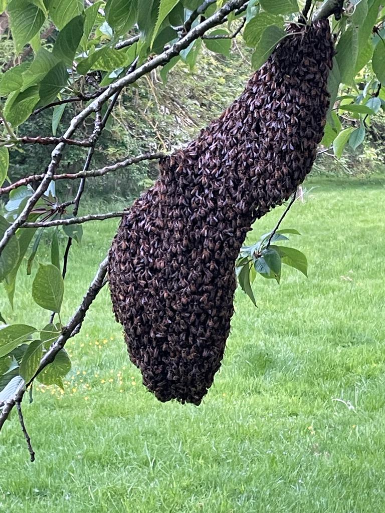 *After I posted this picture on Twitter/X, someone very kindly informed me this is actually a ‘swarm’ of bees. I’m sure they’re right… but I dunno… I always thought swarms, you know, swarmed. In the air. Obviously these bees didn’t get the memo.