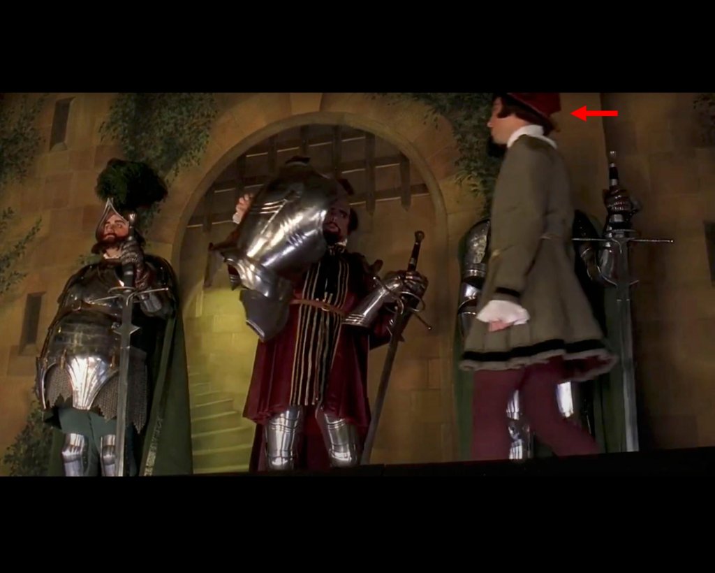 I ended up making a ‘blink and you’ll miss it’ appearance in the stage-set scene below, playing the squire of Timothy Spall’s singing knight (the movie’s all about Gilbert and Sullivan and their musicals, if you didn’t know).